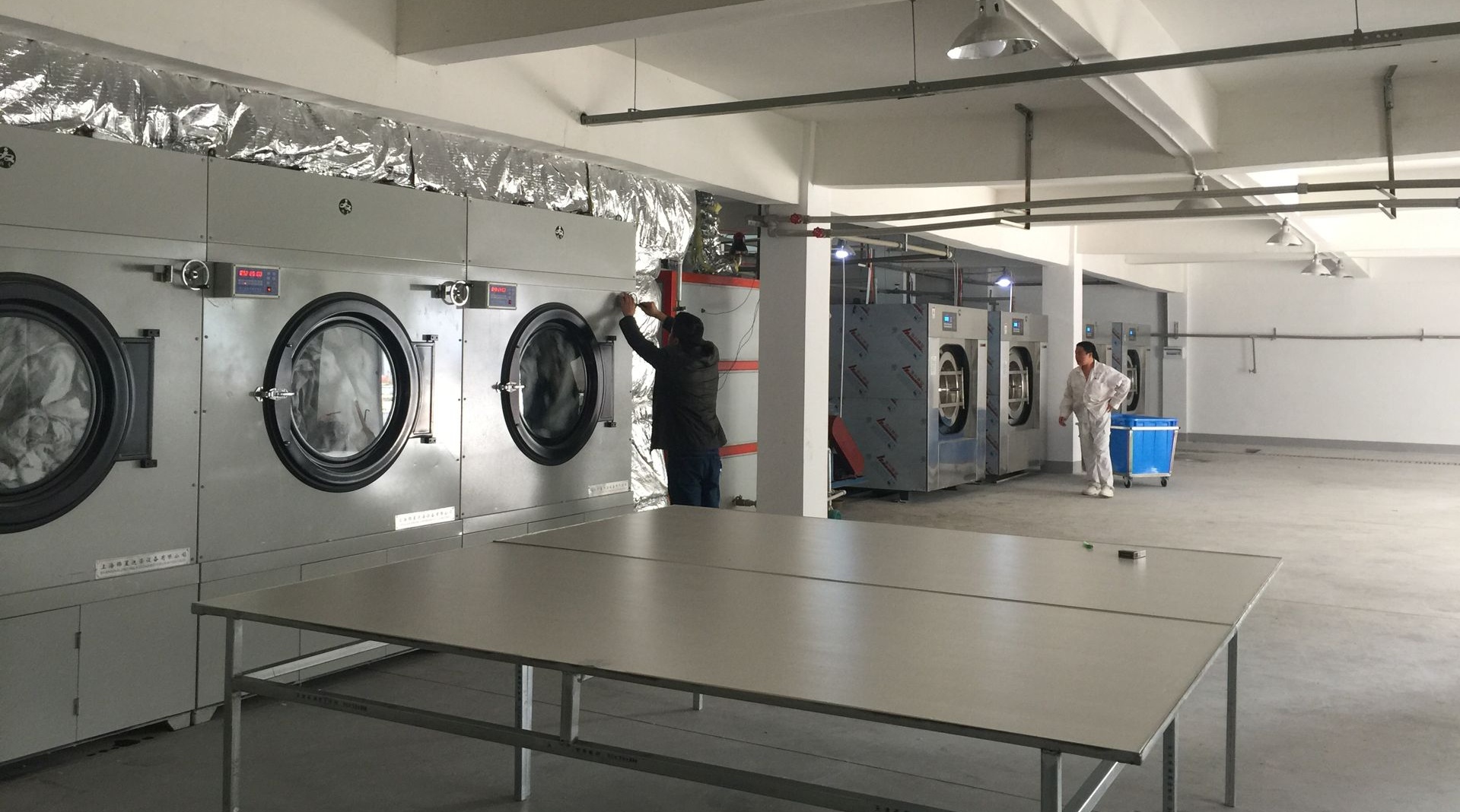 純純洗滌現有員工三十余人,專業技術人員二人,擁有工作場地、曬場共計1500平方米,專業配送車輛4輛,專業洗滌設備全自動洗脫機(100KG)6臺、烘干機6臺、燙平機、燙臺、縫紉機等配套設施齊全,能夠有效保障洗滌物品從運輸、洗滌、消毒、整燙、分類、包裝、配送、及工服繡字編號等特色服務為一體的全流程各環節的高效率運行。